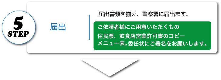 また、届出前に管轄の保健所で飲食店営業許可を取得しておく必要があります。