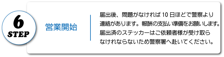 営業開始日の10日前までに、都道府県公安委員会に提出します。